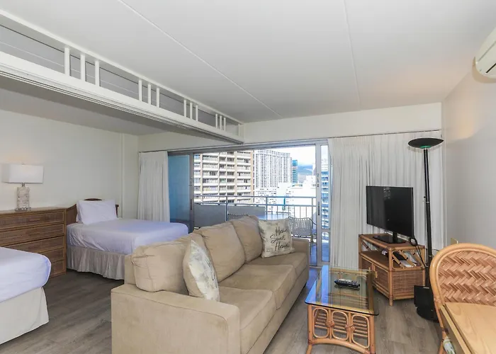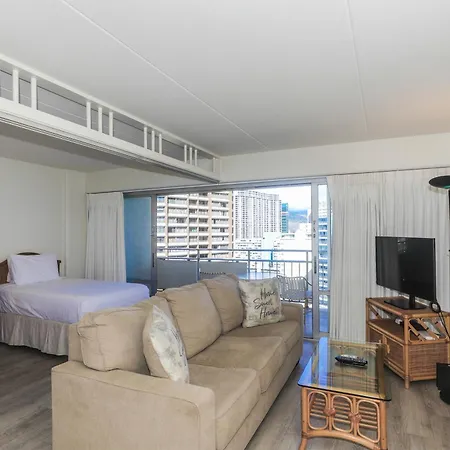Ilikai Tower 1403 City View 1Br ホノルル ヴィラはDuke Kahanamoku Lagoon Boardwalkから徒歩で5分に位置し、リフレッシュできるプールがあります。